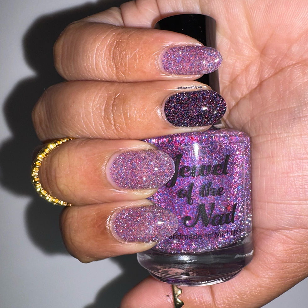Jewel of the Nail was founded in honor of my mother Jewell, who loved nail polish. She also loved the film The Jewel of the Nile. When I was looking for a name for my new passion, I published a polish photo on social media and captioned it, “All my little jewels!” Something in my brain clicked and a business was born! I think she would be thrilled with the name.